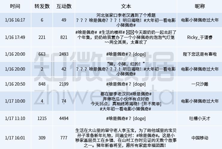 短片中,《啥是佩奇》困扰着河北老汉李玉宝,互联网上,“一次次刷屏的佩奇到底有什么魔力”难倒了营销小伙伴们。让知微化身“数据小保姆”,手把手揭开这传播的奥秘。
