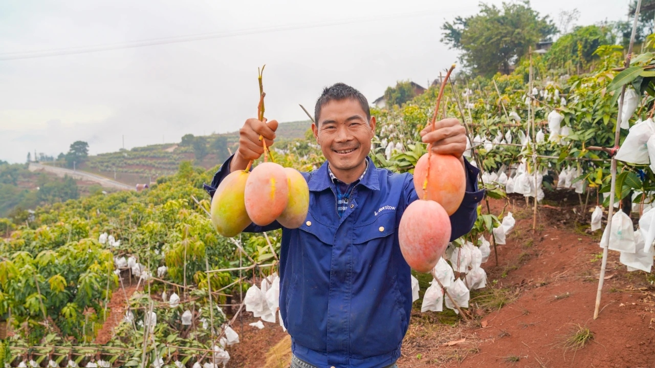 和罗明安一样忙碌的,还有同村的徐金涛。他是组里第一个种植芒果的农户,经过几年努力,20多亩的芒果让他实现了自己“五年规划”的第一个目标:在米易县城买一套房子。他说,从种植传统农作物到种植芒果,从零星种植到规模成片,大家的钱袋子越来越鼓,日子越过越好,这得益于党和政府实施乡村振兴的好政策,得益于党员干部带领大家俯下身子加油干。徐金涛“五年规划”的第二个目标就是争取成为一名共产党员。