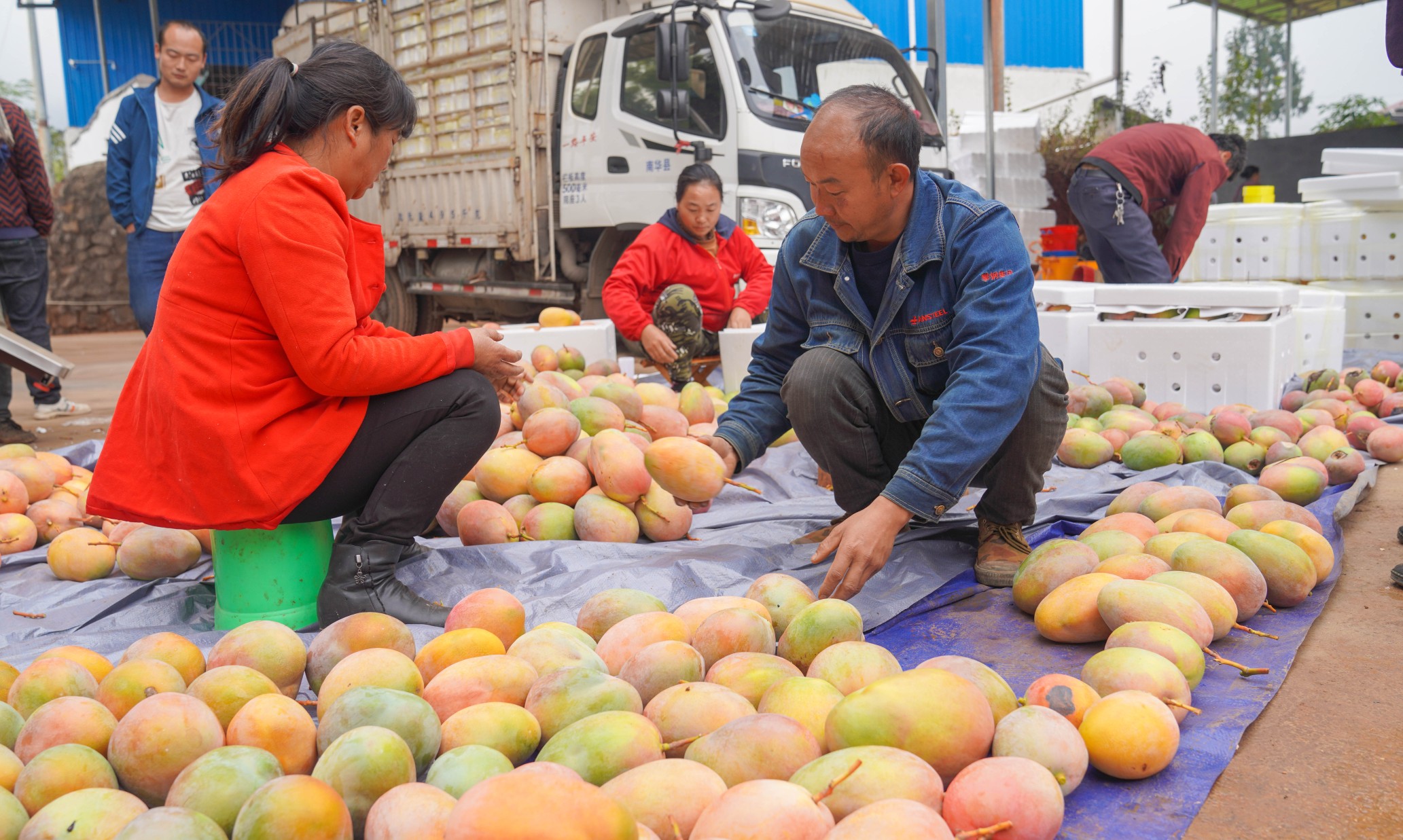 “我在这儿收芒果快两个月了,芒果品质很好,农民很淳朴热情,我们最高一天能收6万斤左右。”芒果收购商纳明仙说。