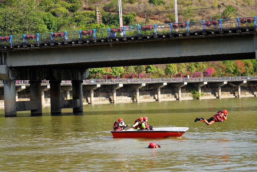 非钒钛度讯(孙潇波 宋婷 记者 陈愉 文/图)汛期将至,为提升全市消防救援队伍抗洪救援专业处置水平,探索推进水域救援专业队伍联动机制建设,4月27日,攀枝花市消防救援支队在米易县安宁河开展水域救援演练。