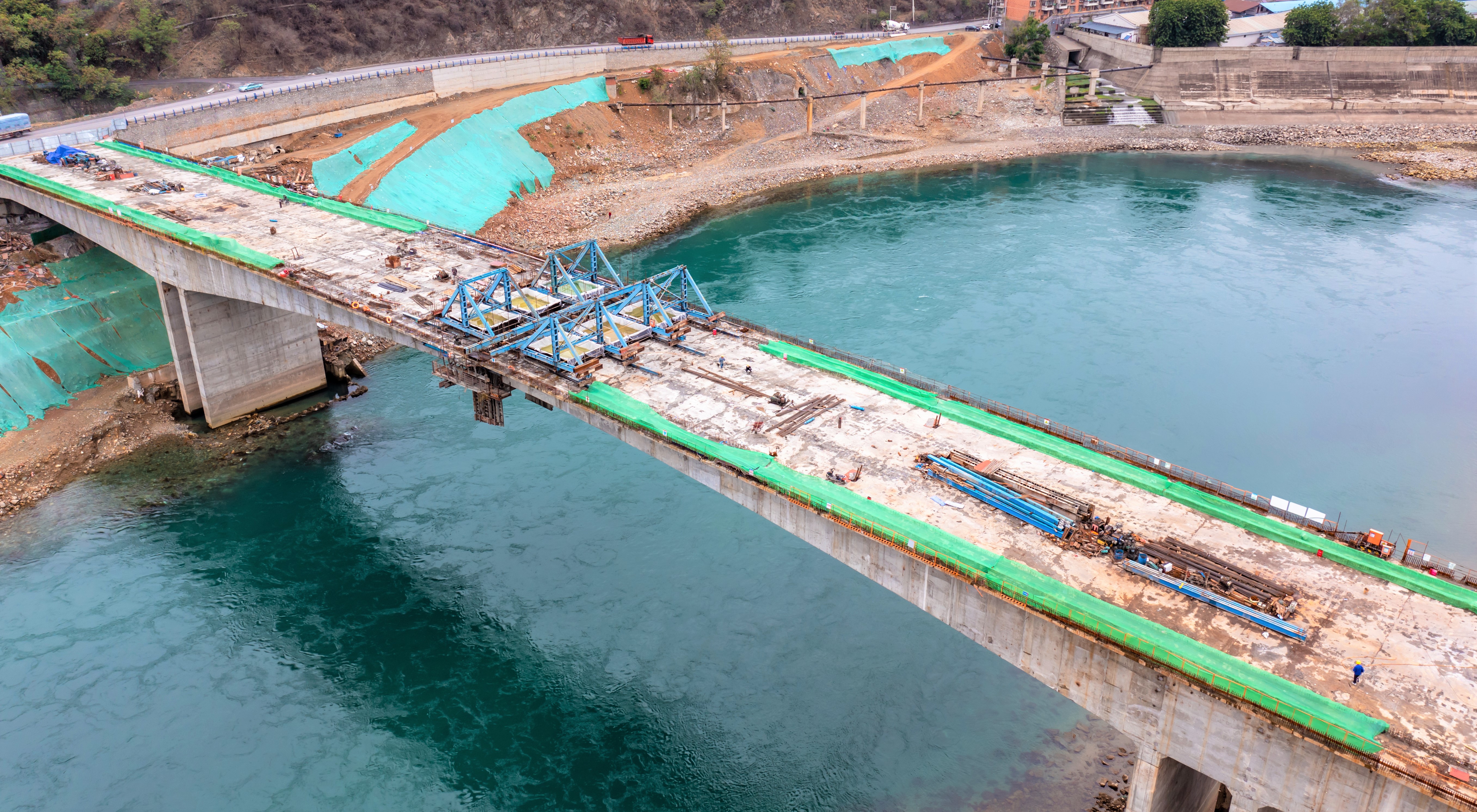 我市地处金沙江、雅砻江交汇处,素有“桥梁博物馆”的美誉, 是一座桥梁架起的城,桥梁承载着历史记忆,承担着发展重任。而在建的银江大桥属于银江水电站配套建设项目,位于银江水电站大坝下游1.06公里处,该项目于2021年2月开工建设,项目预计总投资2.69亿元,大桥左岸连接G353国道,右岸连接G227国道,可谓“一桥飞架南北,牵手两条国道,连通共同富裕路”,是攀枝花人民期盼已久的“民生桥、幸福桥、富裕桥”。