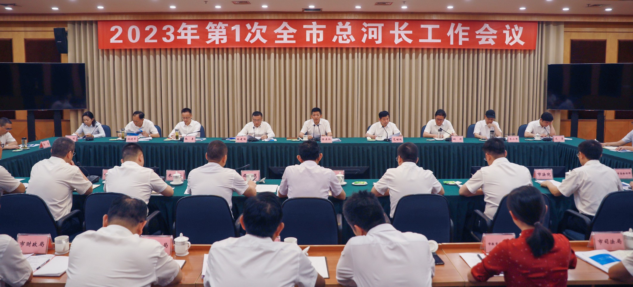 6月8日上午,2023年第1次全市总河长工作会议在会展中心举行。(记者 吴禹涵 摄)