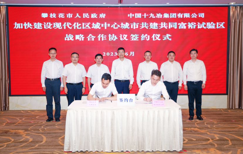 6月25日下午,攀枝花市政府与中国十九冶集团有限公司加快建设现代化区域中心城市共建共同富裕试验区战略合作框架协议签约仪式举行。(吴禹涵 摄)