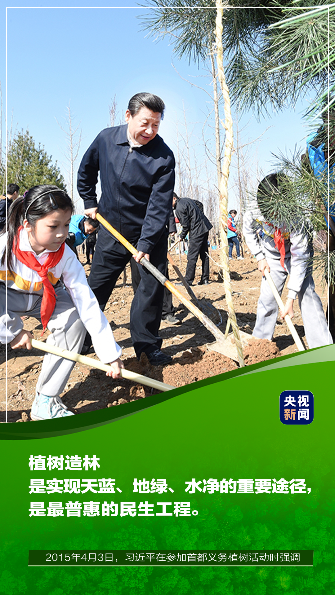 挥锹植树,推动绿色发展,着眼的不仅是美丽中国的愿景,更是人类共同的绿色梦想。