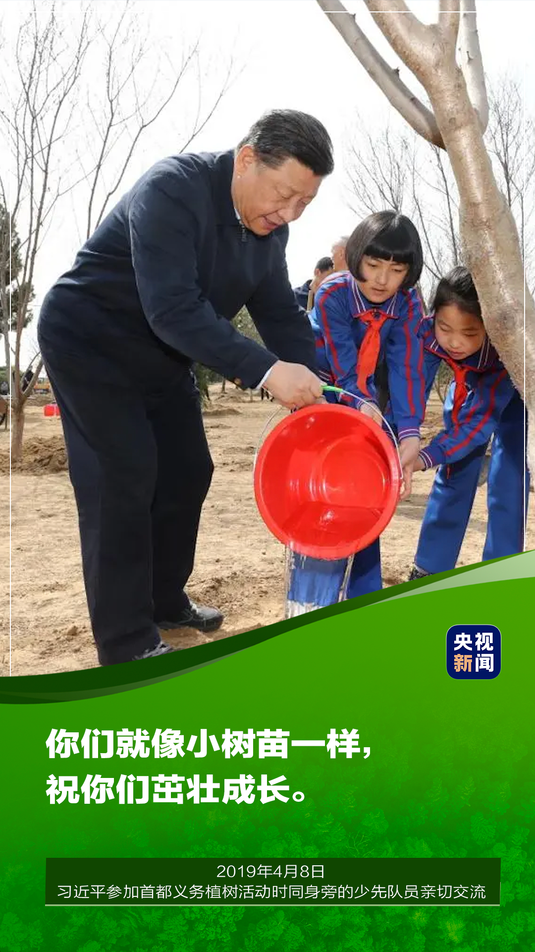 让我们积极行动起来,从现在做起,从种树做起,种出属于大家的绿水青山和金山银山,绘出美丽中国的更新画卷!