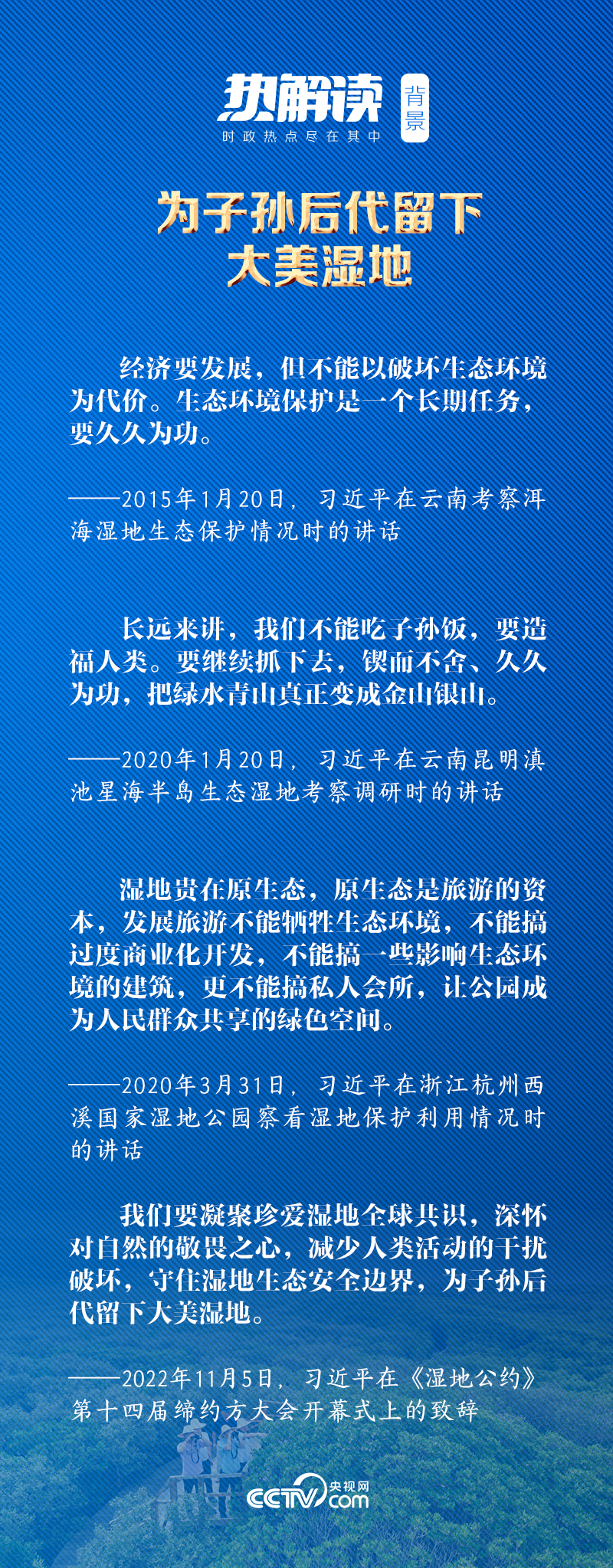 2022年11月5日,习近平主席以视频方式出席《湿地公约》第十四届缔约方大会开幕式并发表致辞,他向世界宣布中国将在深圳建立“国际红树林中心”。海内外舆论认为,此举充分体现了中国对沿海生态特别是红树林保护的关心和重视。