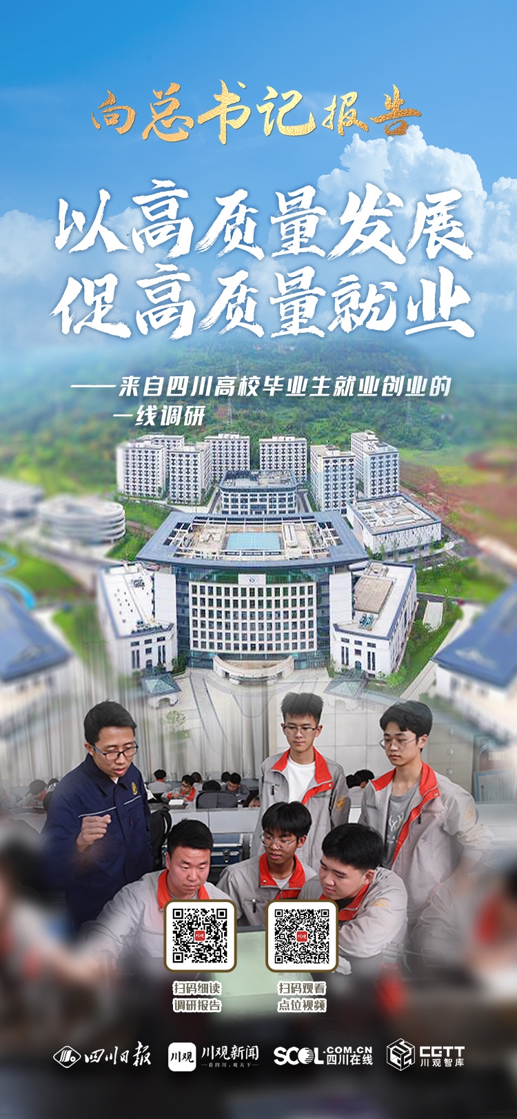 今年5月,四川日报全媒体调研组,以宜宾学院所在地宜宾市、全国首个职业教育促进经济社会发展示范区的德阳市,以及全川聚集高校最多的成都市为样本,进学校、入机关、走社区、访企业,并结合书面调研、在线问卷等形式,对全省高校毕业生就业创业情况开展深入调研。