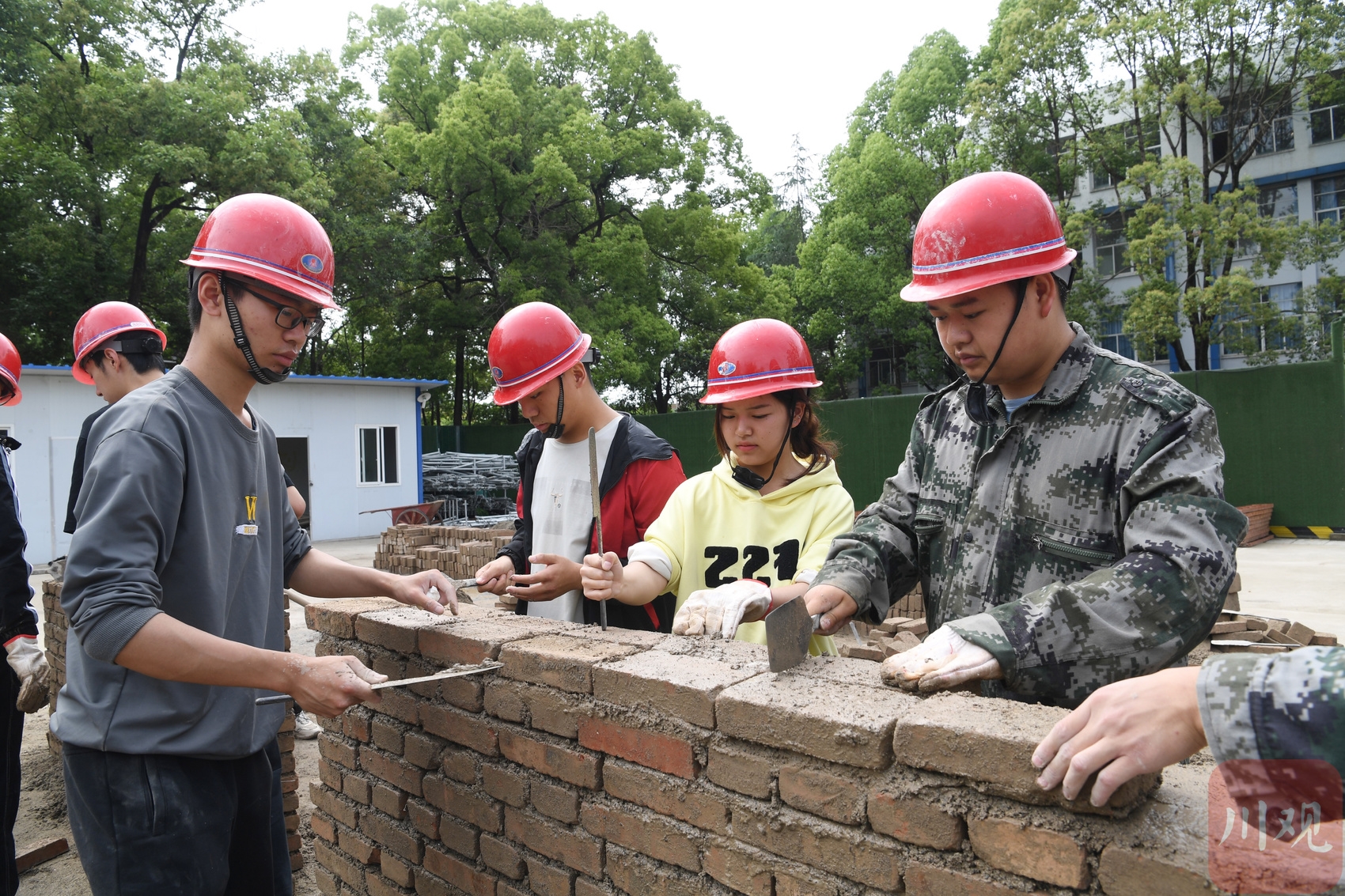 5月10日,四川建筑职业技术学院国家生产性实训基地内,学生进行砌砖实训操作。肖雨杨/摄