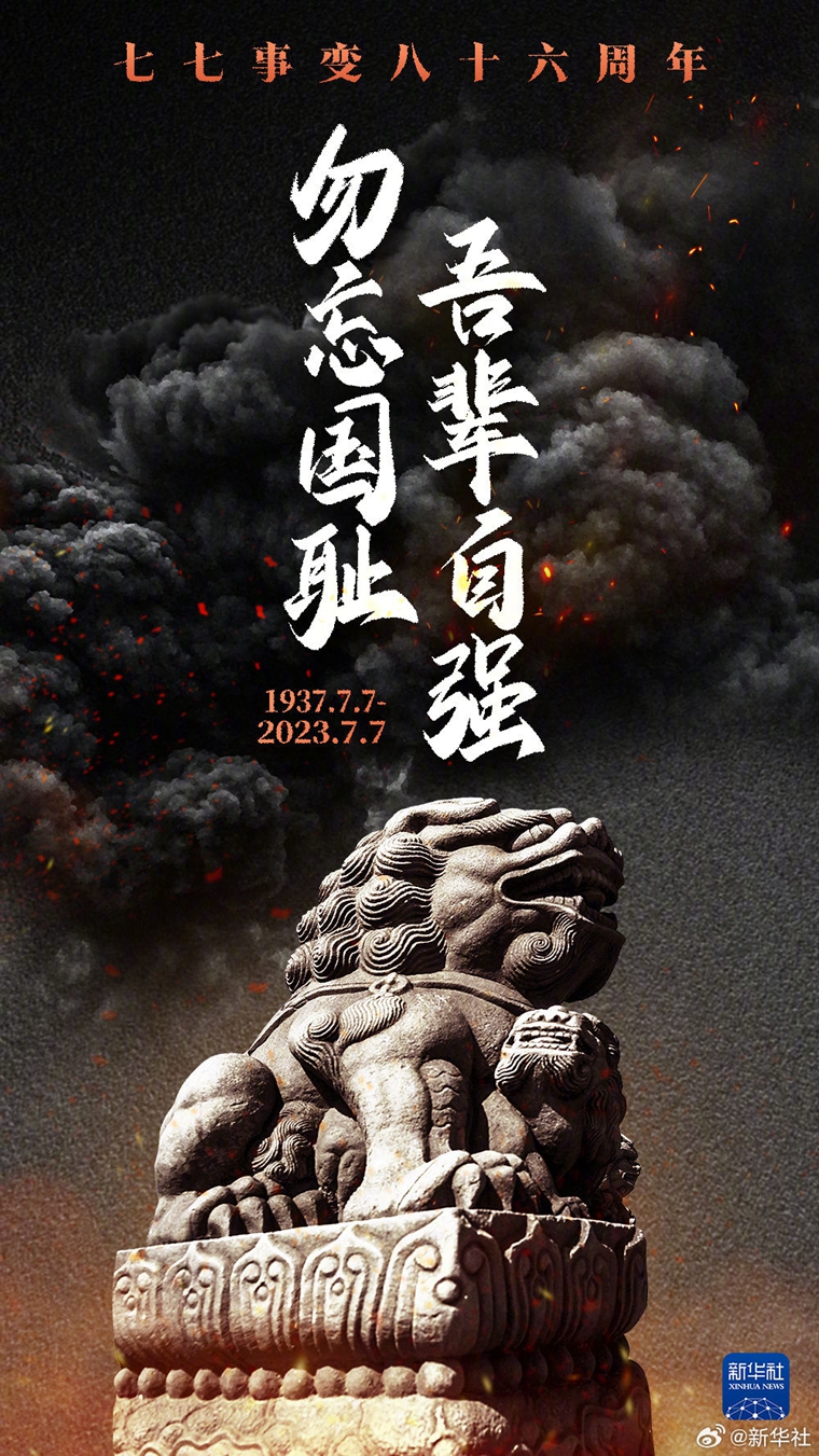 86年前的今天,日本侵略者为达到以武力吞并全中国的罪恶野心,悍然炮轰宛平城,制造了震惊中外的卢沟桥事变。86年过去了,山河已无恙,但国耻不能忘,吾辈当自强!