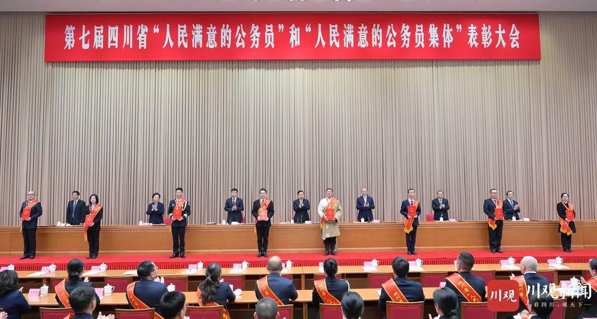 会上,省委常委、组织部部长于立军宣读《关于表彰第七届四川省“人民满意的公务员”“人民满意的公务员集体”和记一等功公务员、记一等功公务员集体的决定》。在热烈掌声中,王晓晖、黄强等省领导向受表彰代表颁奖。“人民满意的公务员”代表邓黎、“人民满意的公务员集体”代表代玺艳作交流发言。