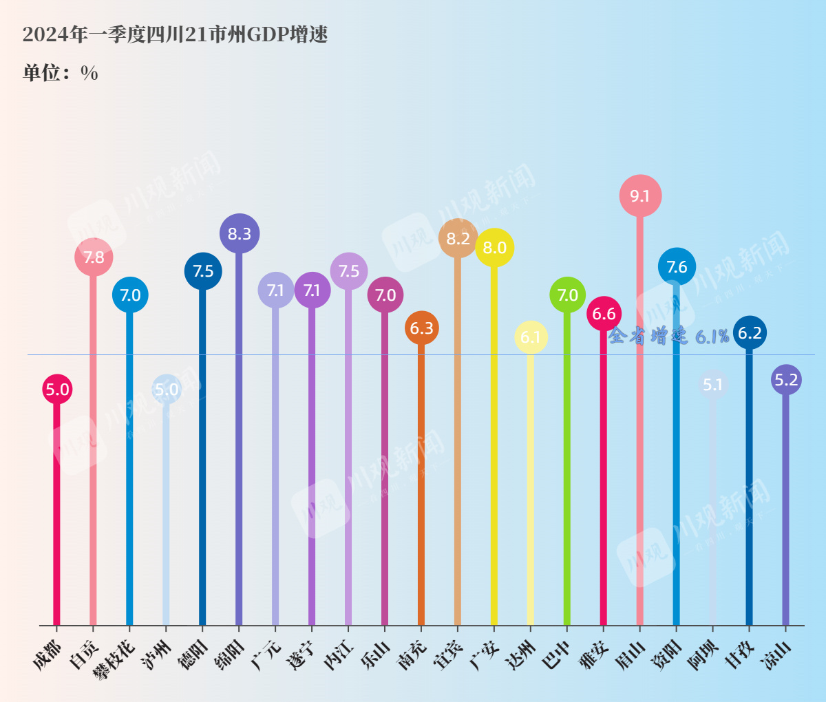 川观新闻记者梳理发现,这是眉山近年来首次在市州GDP增速排行榜中“拔得头筹”。而除眉山外,一季度还有不少市州的发挥也给人惊喜。