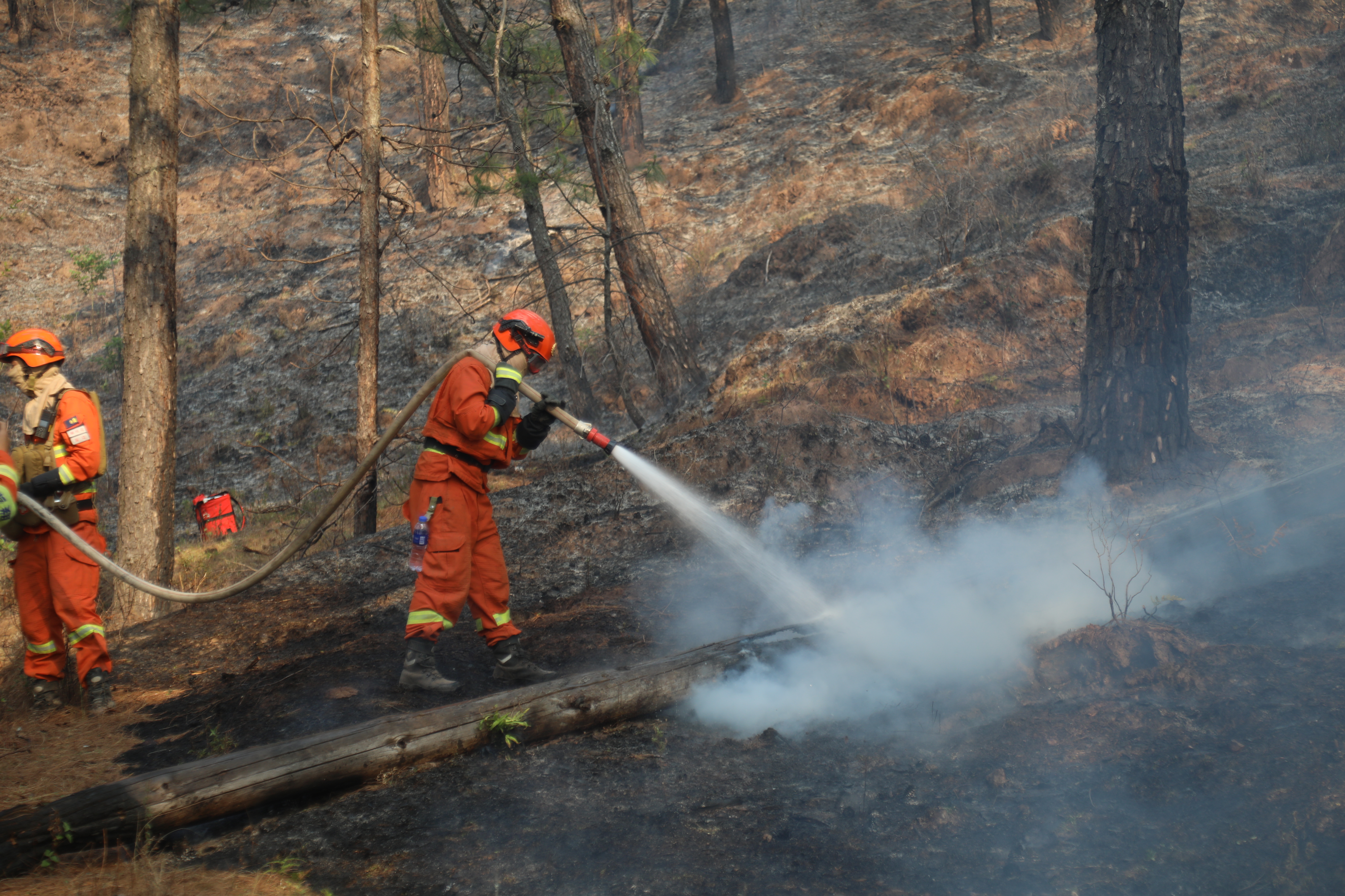达到火场后,联指定下“阻北控西、攻坚东北”战略意图,采取“多方协同、以水灭火,多点突破、分兵合围”战术组织扑救,攀枝花市森林消防支队90名消防救援人员于火场北线打开突破口,利用水泵和常规灭火机具向东扑打,同时跟进清理避免复燃。