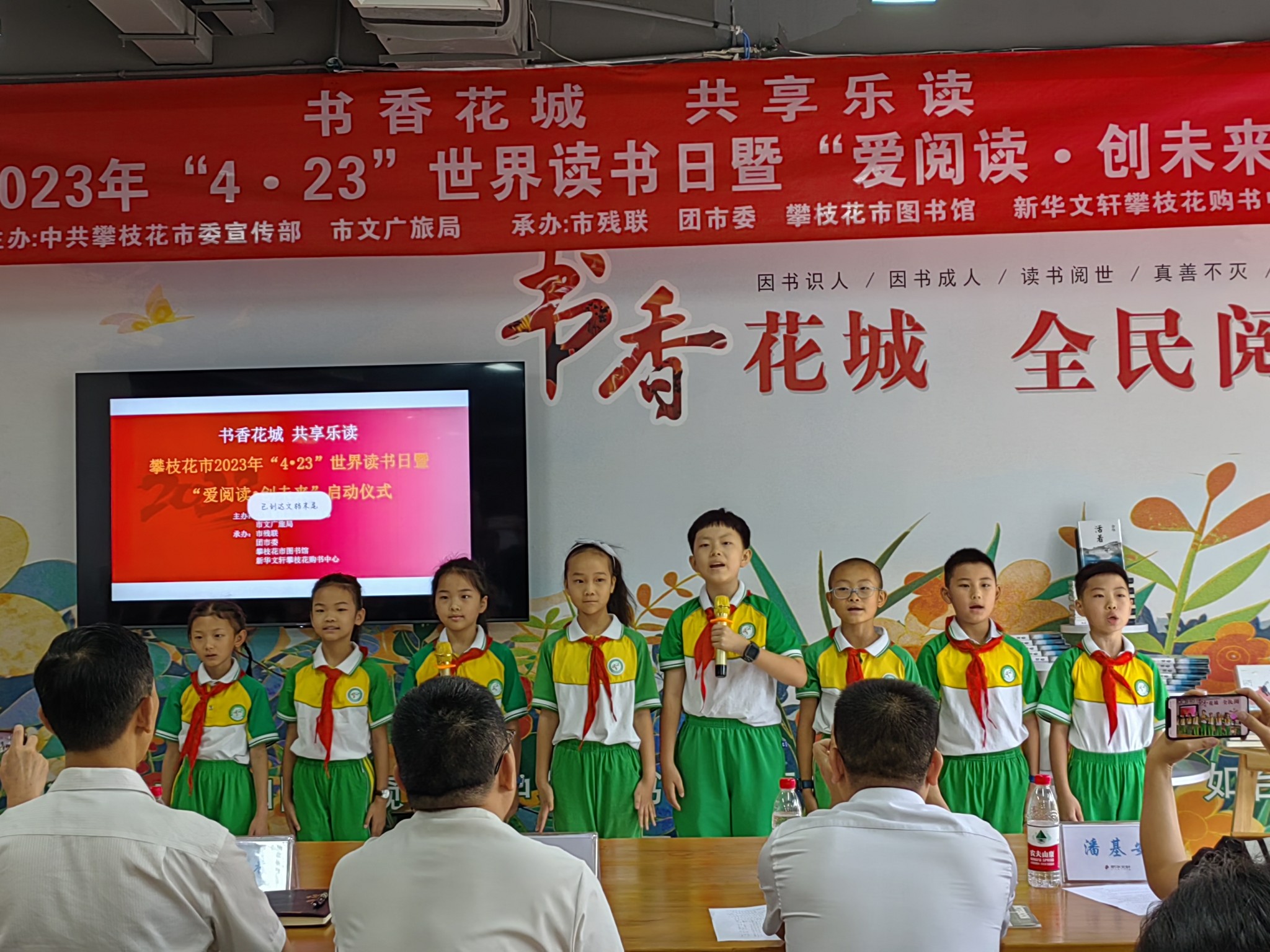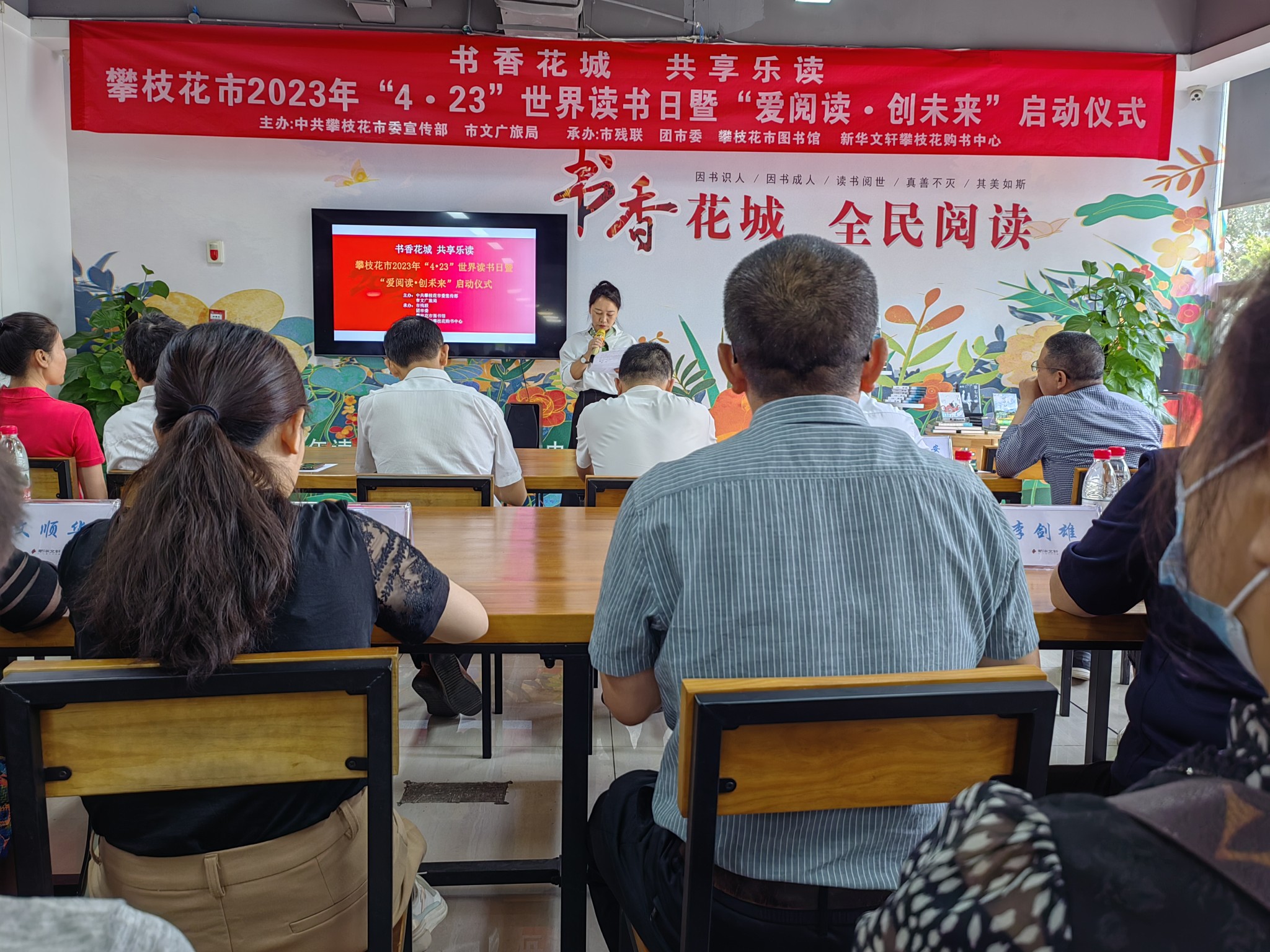 4月23日上午,“书香花城 共享乐读”攀枝花市2023年“4•23”世界读书日暨“爱阅读•创未来”活动在新华文轩攀枝花购书中心启动。活动邀请了金牌阅读推广人文顺华、易兰做主题演讲,分享成功故事和经验,以及在阅读推广领域的见解和思考,激励更多的人爱读书、读好书、善读书。市文艺创评室创作员张亮做了《余华与不断挣扎的许三观们》余华作品阅读分享会,赢得了台下读者阵阵掌声。新华文轩攀枝花购书中心向五个市级残疾人协会赠送购书卡。市二小的10余名小小读行者,朗诵了经典诗句。最后,还举行了“无障碍城市书房”授牌仪式。