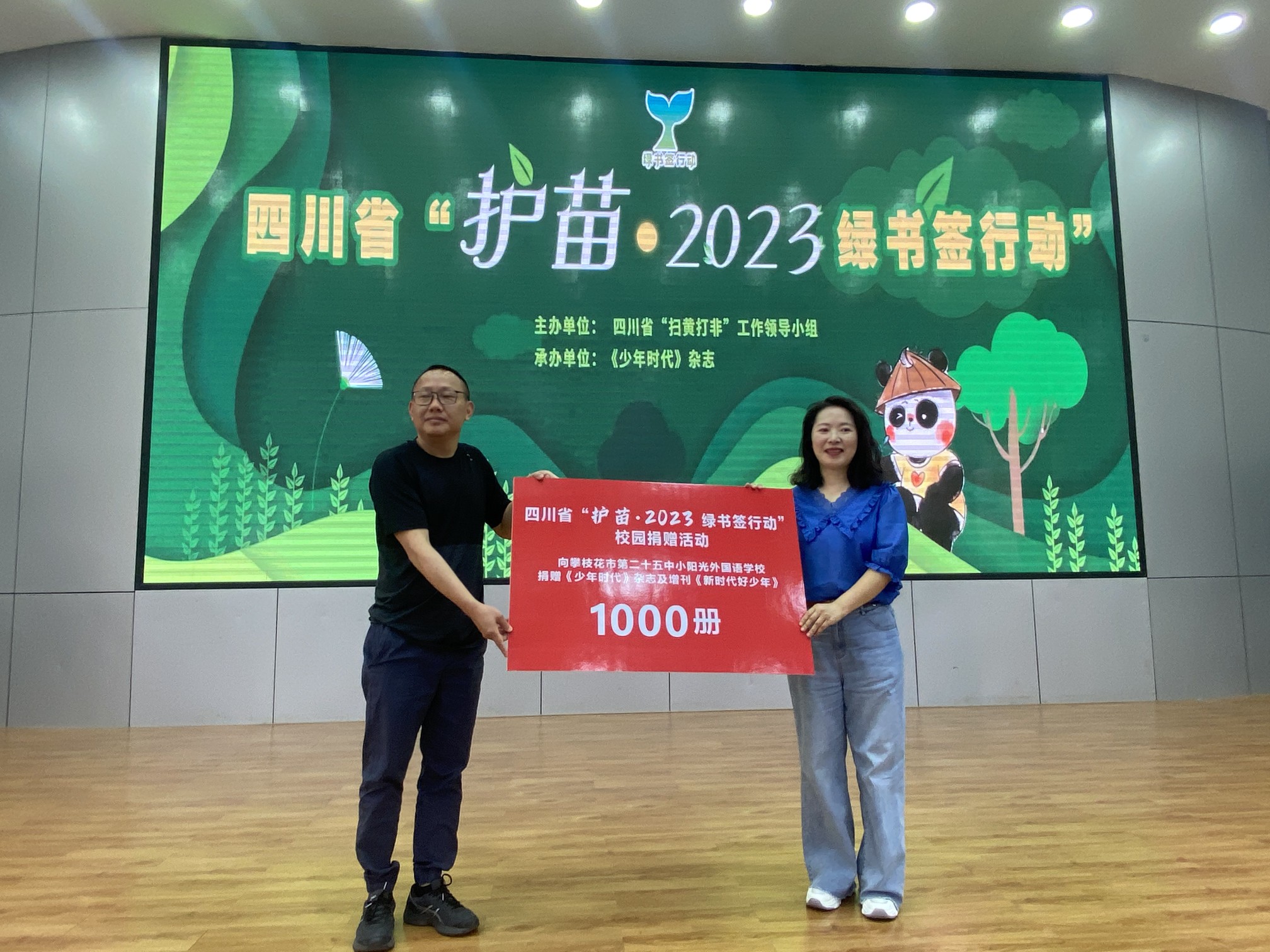 读书分享会现场,《少年时代》杂志社向攀枝花市二十五中小阳光外国语学校捐赠了《少年时代》杂志和增刊《现实的好少年》。
