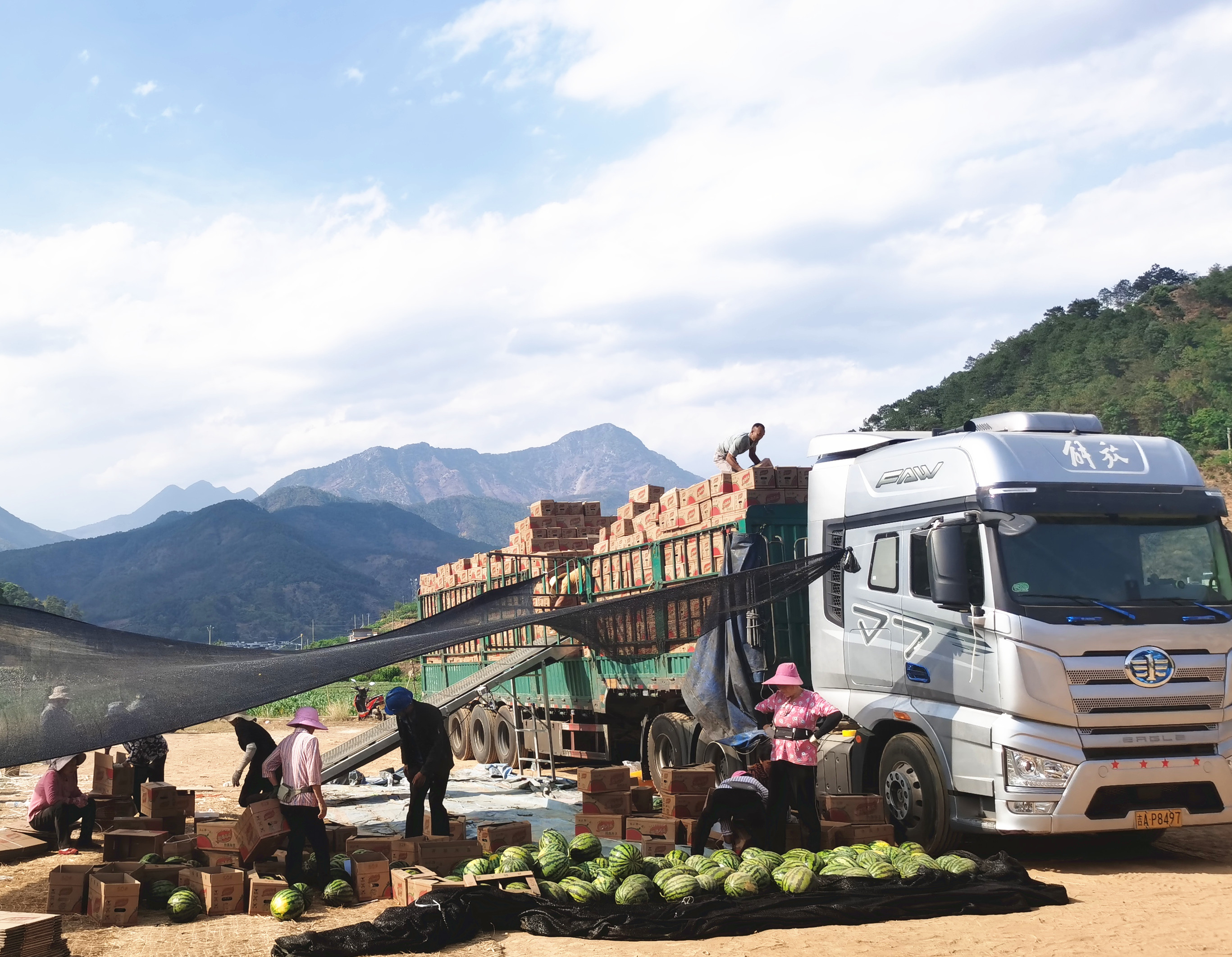 盐边西瓜装车外运。