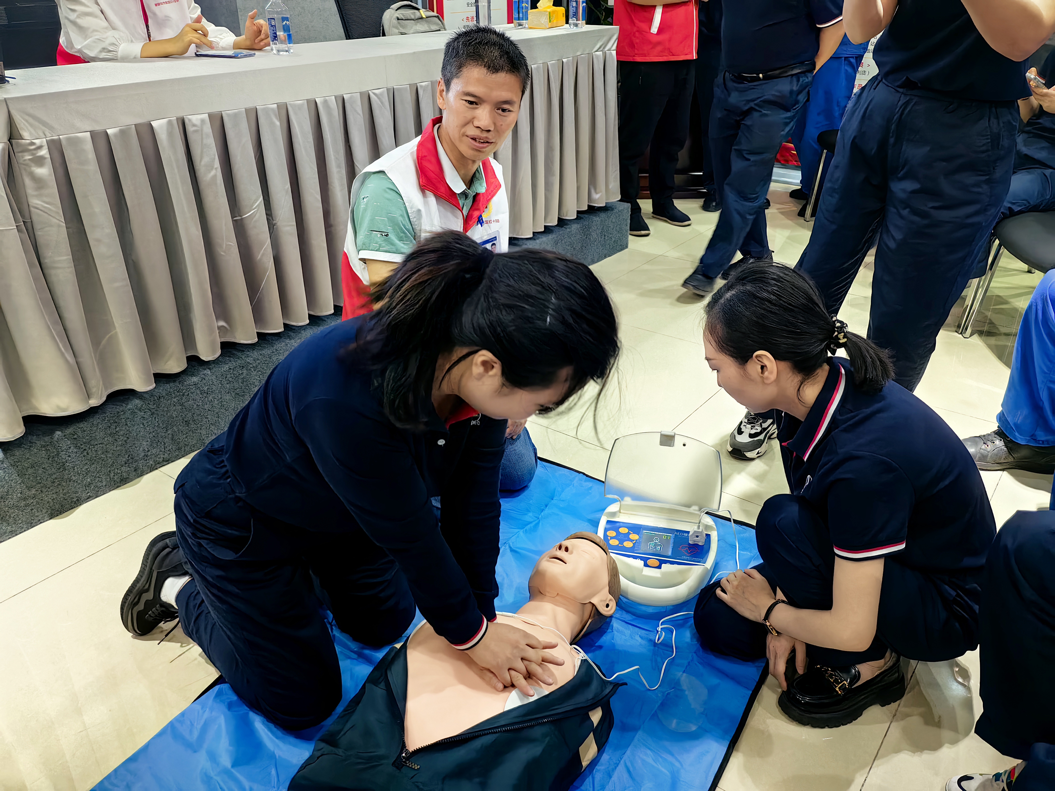 活动旨在进一步普及应急救护常识,提高单位职工自救互救能力。活动现场,东区红十字会讲师通过多媒体课件向职工讲解了日常身体健康管理、心脑血管疾病知识和预防、如何通过线上进行救护、如何应对气道异物梗阻、异物卡喉等生活中的危险情况,用模具演示了心肺复苏术、海姆立克急救法的操作技巧,并现场与职工进行体验式指导。