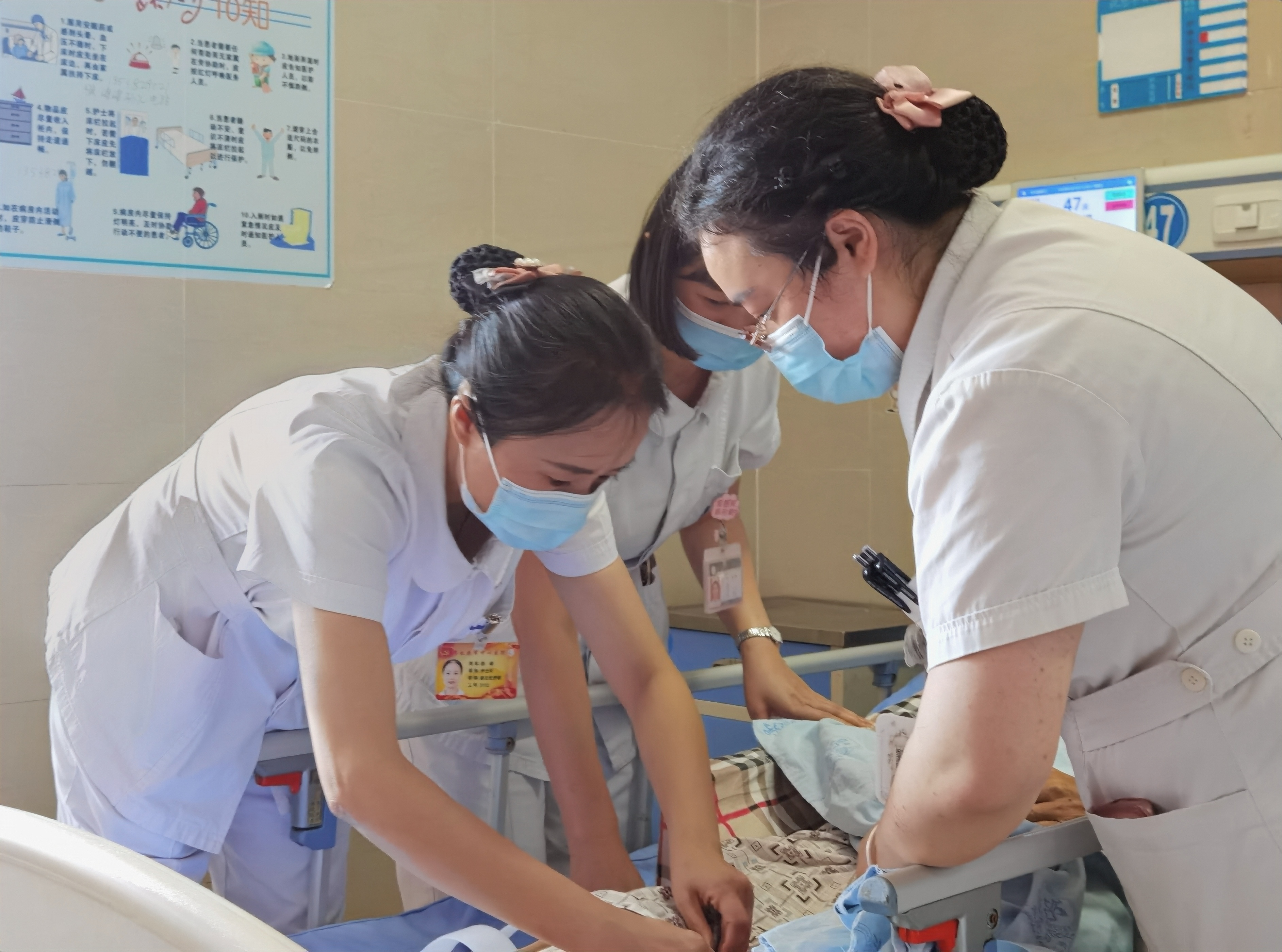 “您明天就要出院了,回去之后一定要注意伤口卫生,以防感染。”“您今天感觉怎样?腿能抬起来了吗?”……5月19日上午,市中心医院骨科住院病房,在完成交接班后,易瑜带着护理团队与医生一起,奔走于各个病房,详细了解病人身体状况,对病人进行康复指导。