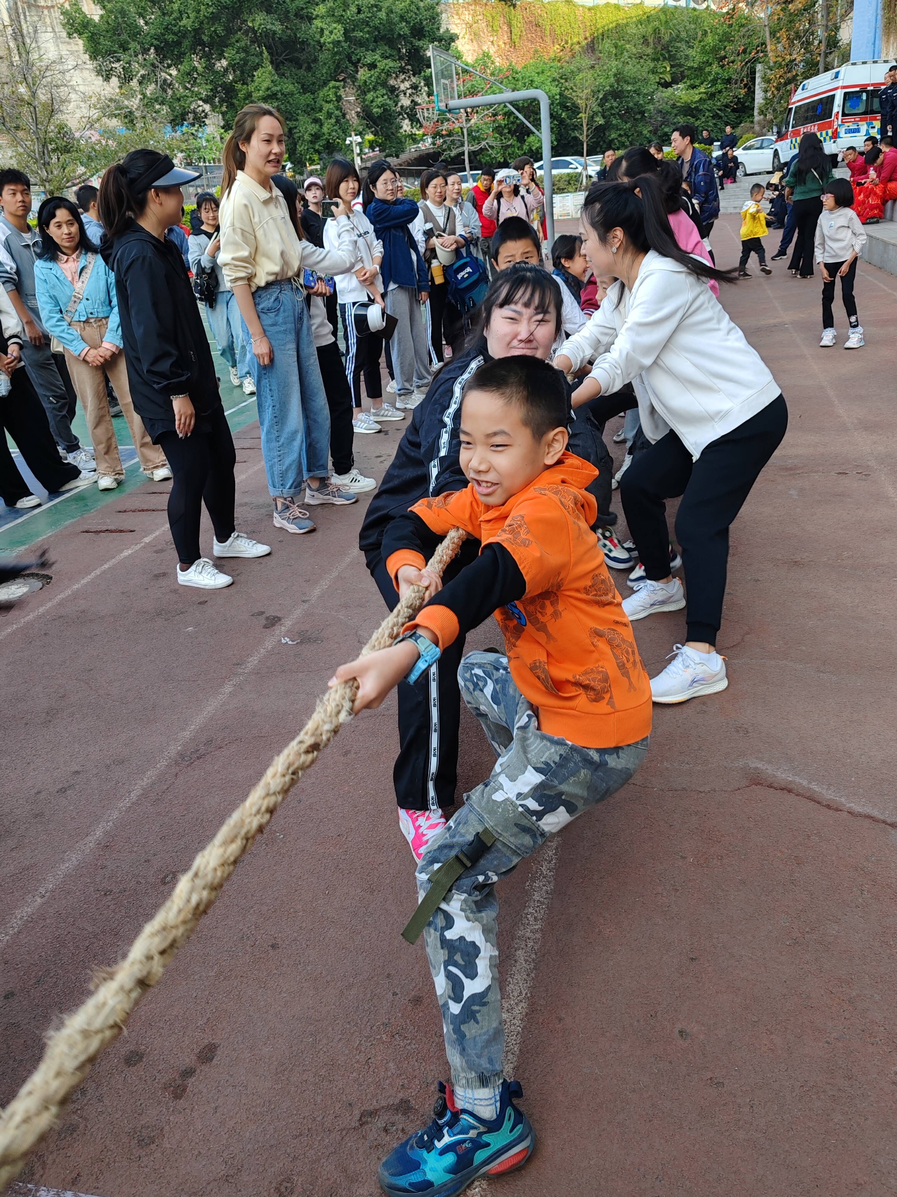 “加油!加油!”2月23日,市6小操场上欢呼声阵阵。在团体比赛项目拔河比赛中,应现场参加活动人员热烈要求,临时增加了小朋友拔河比赛和亲子拔河比赛。