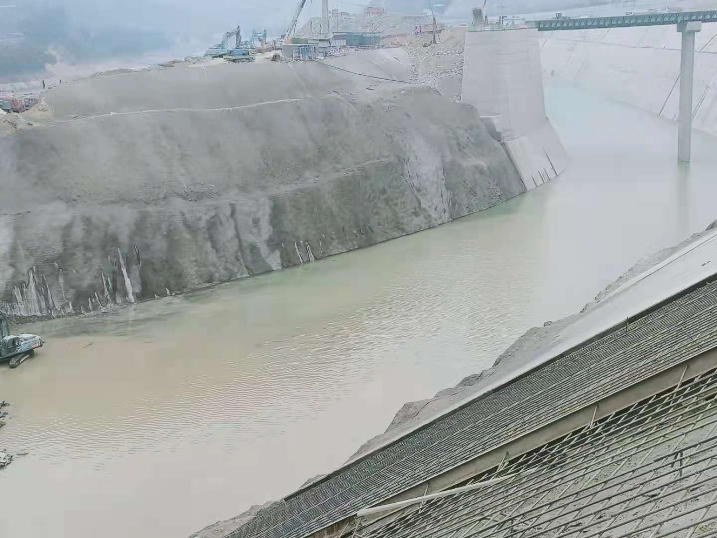 12月5日金沙江江水顺利通过导流明渠现场。